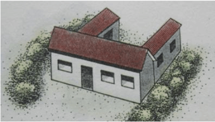 在古书《阳宅十书》中介绍了很多宅型图,详细说明了宅与宅之间形体配合的重要性。修房子连接在一起都有讲究的,我们在修房子的时候呢,最好是一次性把它修到位,不要后面再去添加一些小房子,要是添加得不合适就容易犯风水禁忌。举例来看一下有那些形上不吉的房屋:(图都在下)