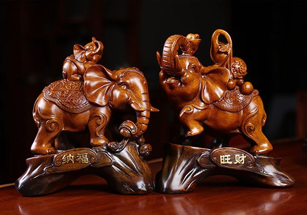 大象可单个放置,当然成对最好,要一个鼻朝上、一个朝下。
